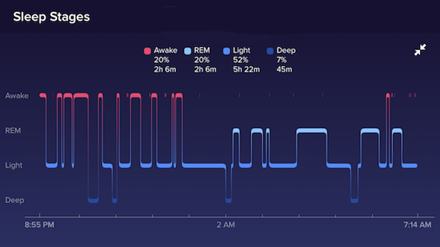 Below is a screenshot from my phone. It shows a recent night of sleep tracking from my Fitbit. The red parts are when I was awake. It’s pretty easy to tell from this picture when I got up, took two (more) Tylenol®, and finally got some decent sleep.